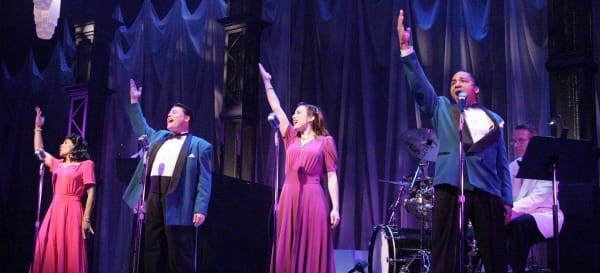“How do you review The All Night Strut?†my theatre companion asked as we left The Colony Theatre. Well, you don’t. This short Cabaret-style evening of songs (culled from the Swinging Years) has no plot, no skits, no set changes, no characters, and no reality – it’s a superficial stab at recreating the feel of that era – which means it is un-reviewable. The songs are noticeable for lifting America’s spirits in hard times, but like a cruise ship act that lulls us into a somnambulistic state of reminiscence, all we can hope for is bandstand-like performances and jitterbugging before we head back to our stateroom.