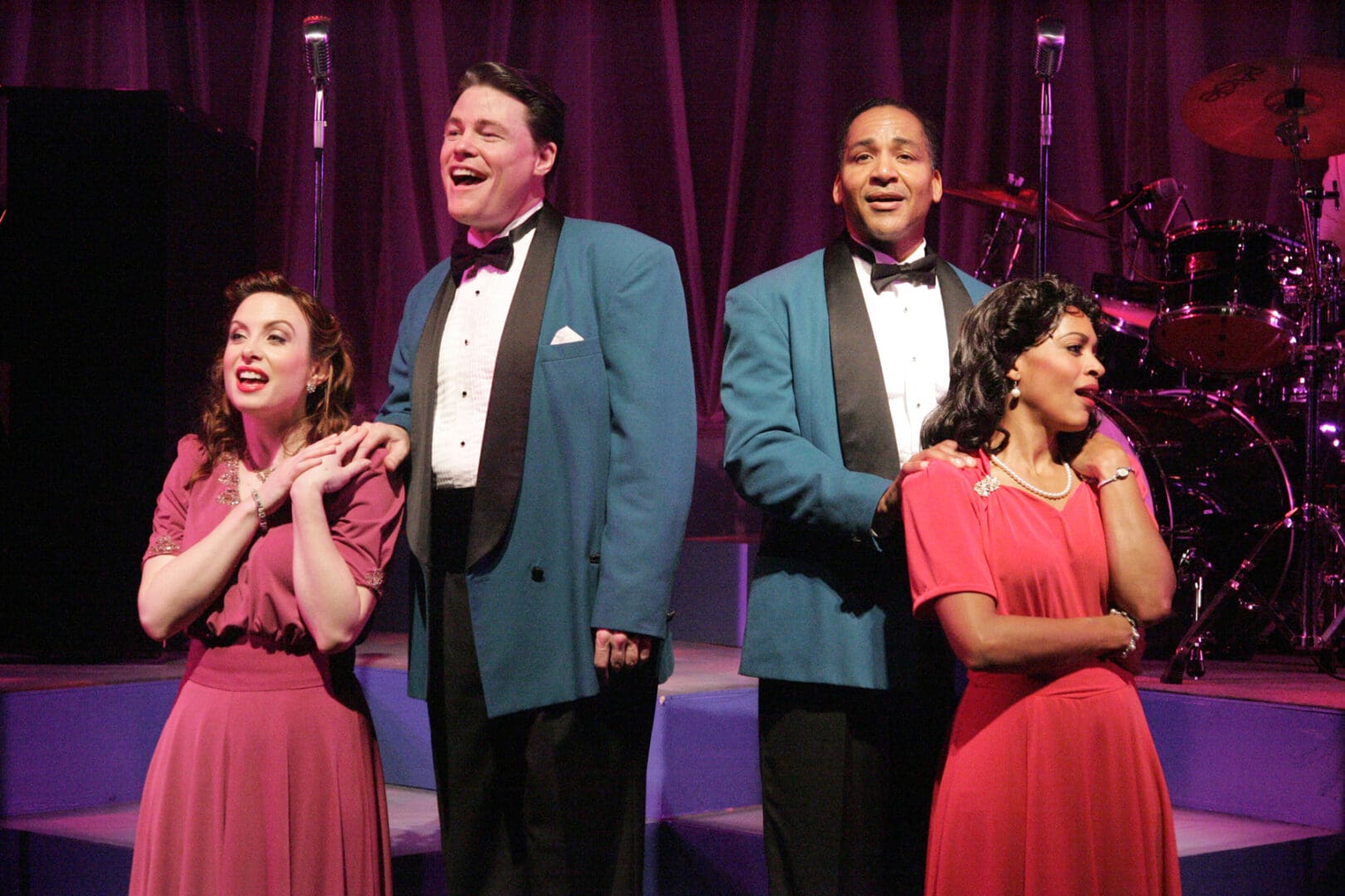 The astounding musical director Dean Mora, who pounds the piano with nary a scrap of sheet music, goes on a “coffee break,†prompting the cast into “Java Jive†as they pass around the pilfered mug from Mora. “Contrived†doesn’t begin to express silly segues such as this, presented on a multi-tiered set that looks like it could have been drawn by M.C. Escher (set design by Stephen Gifford).
