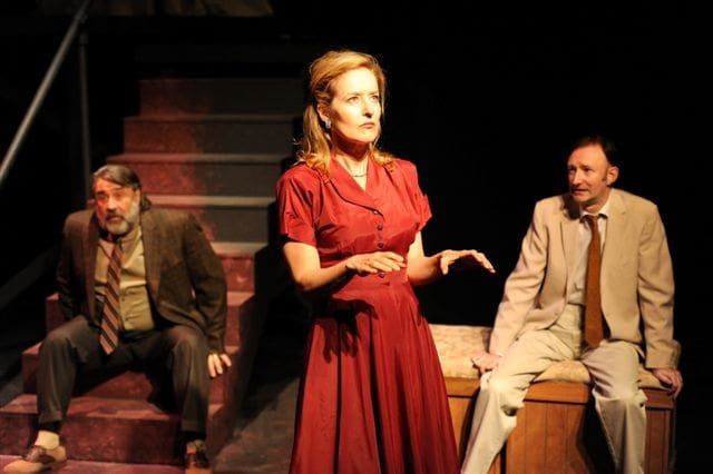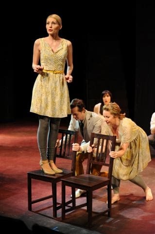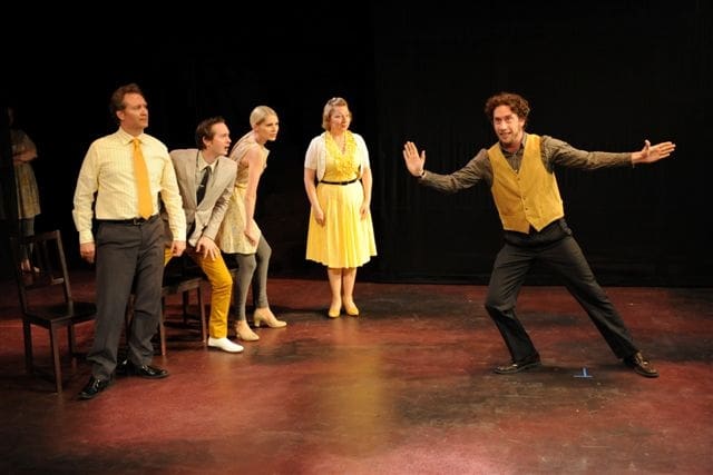 Quite often, the shenanigans produce hearty laughter, but zaniness took a back seat to the more dramatic proceedings; the tone was that of a very serious and masterful play by Tennessee Williams. In fact, one scene between Elliot (the quirky and eminently watchable Edi Patterson) and her 16 year-old younger sister (the ridiculously beautiful Lauren Rose Lewis) displayed such an authentic tenderness that it was deeply moving. Also gathered at this Gothic retreat were duplicitous and sex-starved Southern men (deliciously played by Brian Michael Jones and Dan O’Connor), a creepy, alligator-murderer (Paul Rogan), and a deeply troubled cousin (the spectral Jo McGinley) who meets her doom by perambulating into the swamps (it didn’t go unnoticed by Mr. O’Connor that it was odd to have a farm built on coastal swampland). The suspicious proprietor (a quick Lisa Fredrickson) never entered the scenes without a trayful of alcoholic beverages.