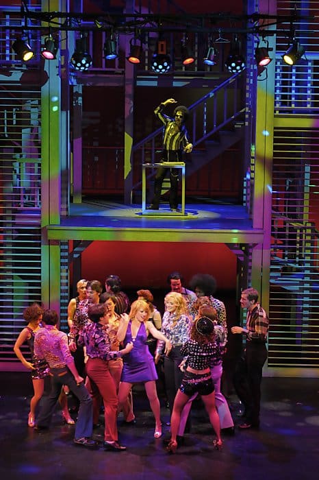 The much-anticipated Tales of the City just opened at American Conservatory Theater in San Francisco. Although the libretto (by Avenue Q’s Jeff Whitty) splices together the first two of Armistead Maupin’s famous books about a mélange of San Francisco denizens in the anything-goes sexual revolution of 1976, the musical feels about as San Franciscan as a Coney Island Hot Dog. There are no neon lights piercing the fog-drenched skies, no Victorian Manses, no Hitchcockian backdrops — just Douglas W. Schmidt’s multi-tiered, rock ‘n roll set that can only be described as giant shutters from the windows of Disney World’s Caribbean Beach Resort (the design also serves to block some of the actors from the audience).