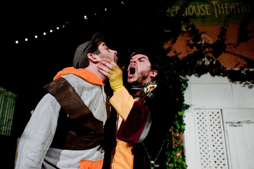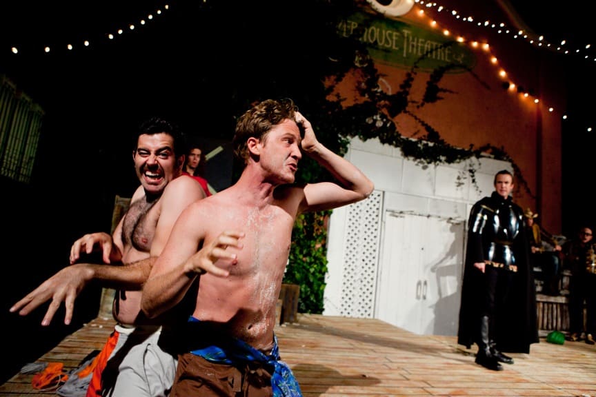 The production kicks off to a simple start, laying the foundations of the plot with only a few dropped trousers. Director Drew Shirley relies on the Bard’s witty wordplay to introduce the confusion between long-lost twin brothers Antipholus of Ephesus (Roger Stewart) and Antipholus of Syracuse (Mark Schroeder) – and their likewise related servants Dromio of Ephesus (Jesse Sharp) and Dromio of Syracuse (Cy Brown). But once the plot has been set in motion, this riotous production escalates in innovation and hilarity with each scene.