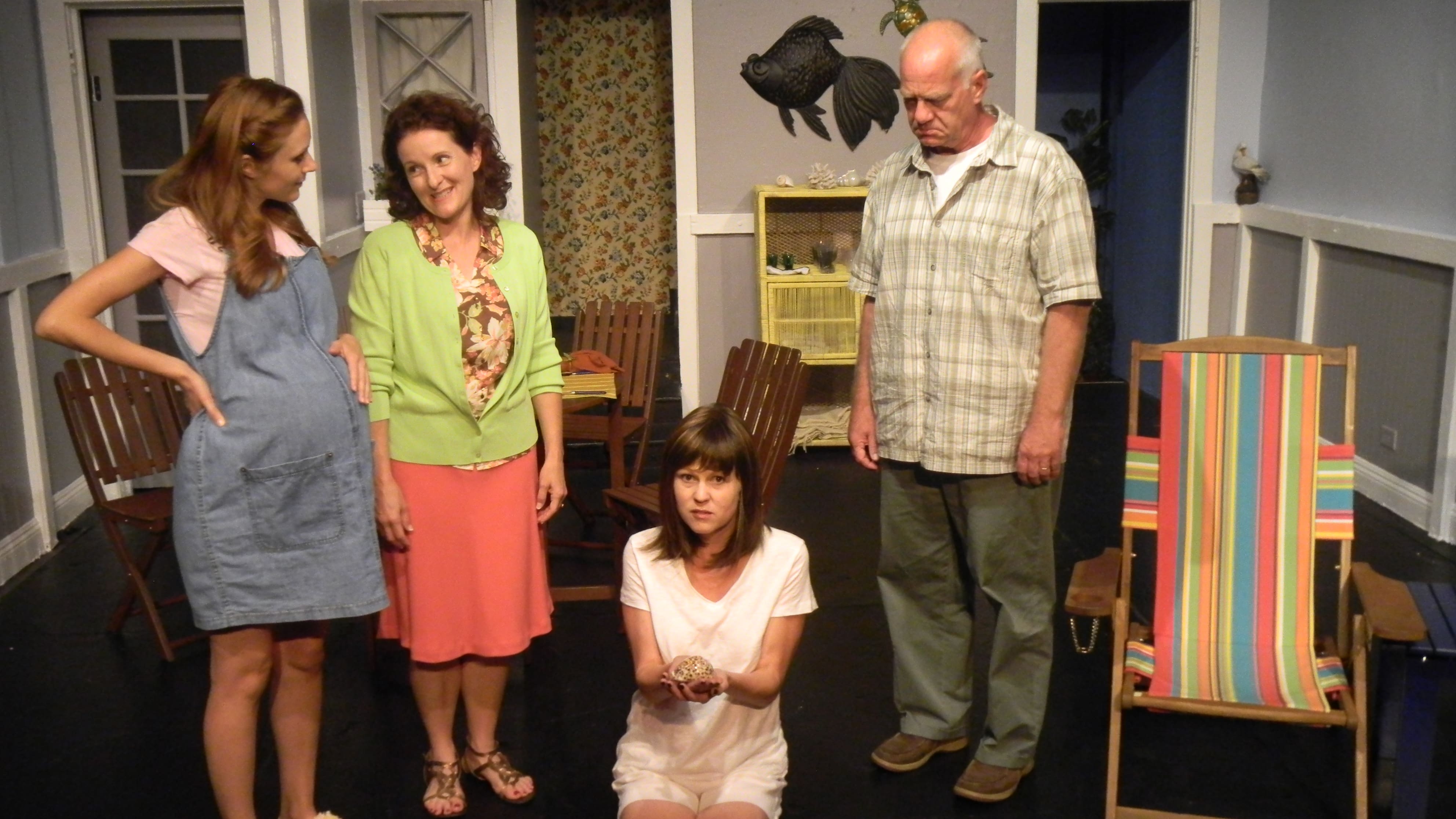 In Collaborative Artists Ensemble’s production of Jon Courie’s new play, To Carry the Child, the oldest daughter, Ashley (Meg Wallace), her life in shreds, is facing a serious disease and finds her lover, Diane (Justine Woodford) running from the crisis. She returns to her family home in Caraprice Ilse, North Carolina, in need of support from: her anxious-to-please mother, Lib (Pamela Daly); her bigoted and dictatorial father, Bo (Robin Nuyen); and her favorite younger sister, Sissie (Christine Haeberman), pregnant with the first grandchild. Ashley is defenseless when dealing with her family. She longs for some clarity but finds little solace and fewer answers to the questions that have plagued her all her life.