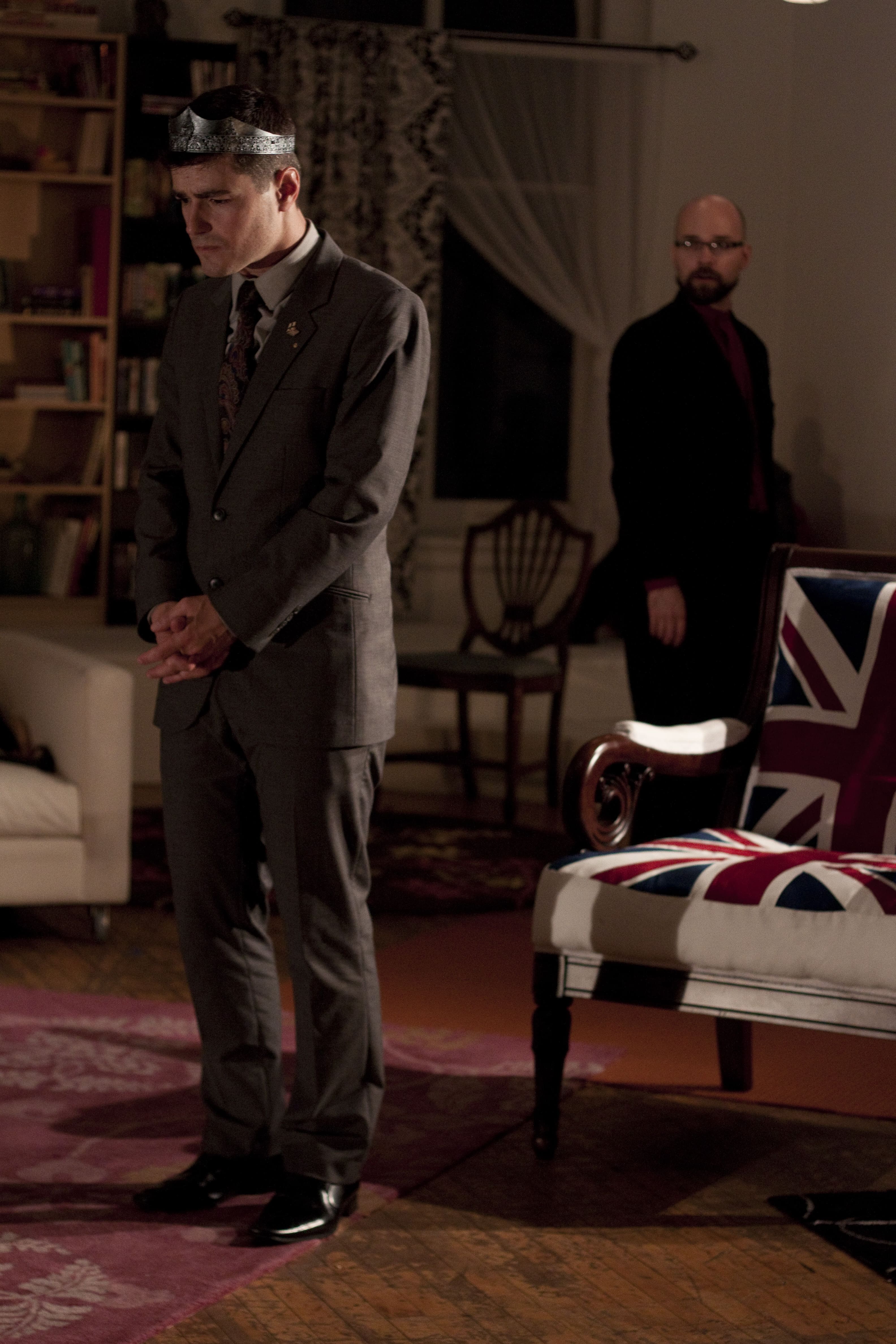 Arthur’s death is mistakenly attributed to King John, whereupon England erupts in riots against the king. In this contemporary staging of the play, the burning and looting of London streets are glimpsed on a television news program that seems ripped from recent headlines. The use of television programs and cell phones is not always as successful. The business in the beginning with family members jockeying for the remote control is particularly awkward. It’s also a little jarring that everything is modernized except for the obsolete notion of monarchy. The cast looked a bit uncomfortable kneeling before the king in modern dress (especially the women in knee-high dresses) and it was a little hard to believe that these upper-crust Park Avenue types were fighting for a kingdom instead of, say, a piece of the family corporation or a chunk of the family estate – but this is quibbling. The Life and Death of King John is an assured production of a play that deserves to be reevaluated. New York Shakespeare Exchange scores an impressive debut in their brisk and jaunty production of Shakespeare’s much maligned tragedy of succession.