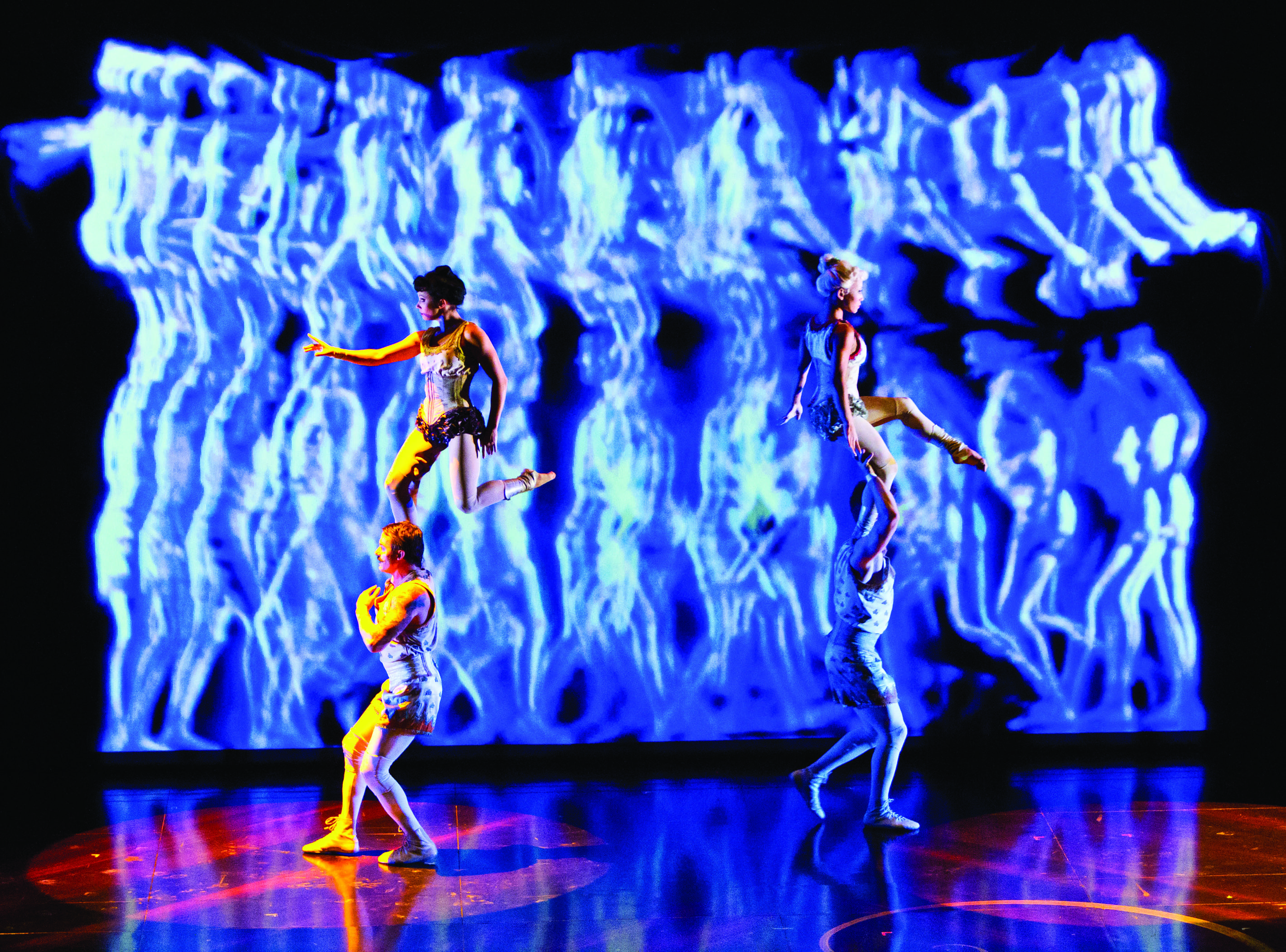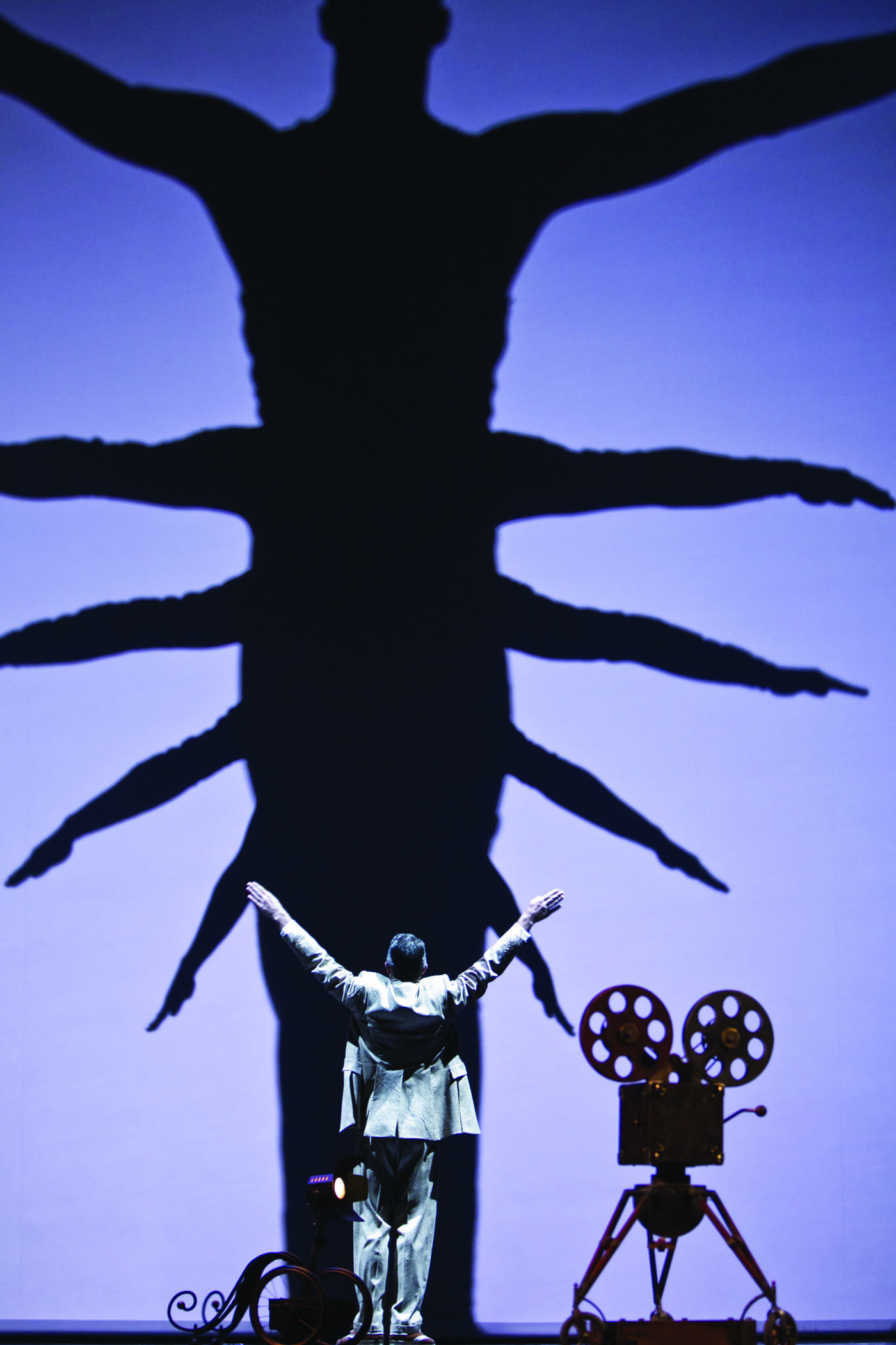 The title IRIS refers to the human eye and what the eye sees and does not see. It signifies to the thoughtful viewer to watch carefully, since here is a show that blurs the already fuzzy line between fantasy and reality. This blurry line doesn’t merely refer to the fantastical nature of the stunts performed, but to the medium that always blurs fantasy and reality: cinema. The ability to mix fantasy and reality is precisely what makes cinema such a powerful medium. IRIS, with its heady mix of multimedia and live performance, manages to multiply this potentiality to the nth degree.