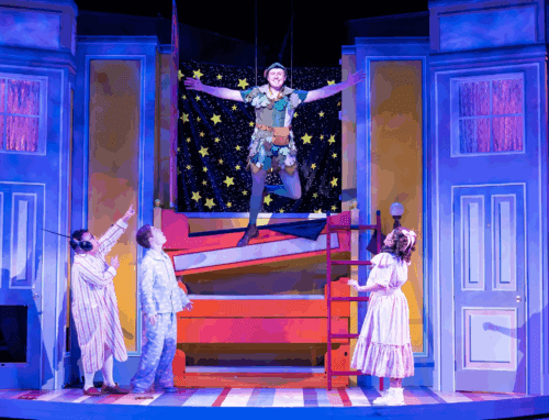 The La Mirada Theatre’s Broadway Series takes a gleeful nosedive into chaos with Peter Pan Goes Wrong, Mischief Theatre’s follow-up to The Play That Goes Wrong. Directed with buoyant precision by Eric Petersen, this meta-farce turns every technical blunder and mistimed cue into artful slapstick that feels spontaneous even when it’s anything but.