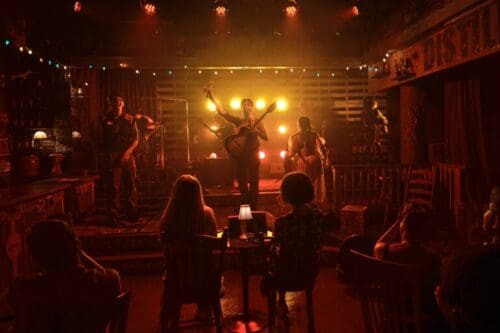 Every member of the ensemble pulls double (or triple) duty—playing instruments, shifting characters, and delivering emotionally calibrated performances. Andrea Goss and Derek Stoltenberg, on keyboards and drums respectively, also inhabit multiple roles with flair and nuance. The music, composed by Ethan D. Pakchar with lyrics and book by Douglas Lyons, leans country-rock, rooted in the emotional and geographic soil of the South. Each character gets their moment in the spotlight, but it’s Ace’s journey that anchors the show.