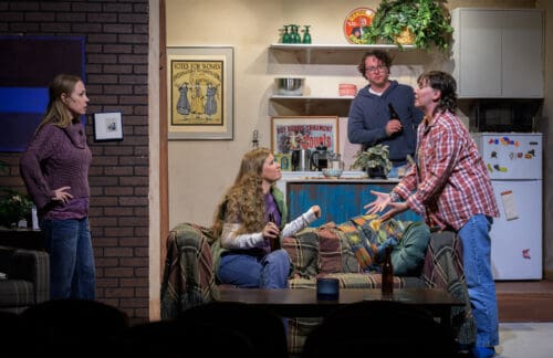 The ensemble is uniformly strong. Kim Schroeder Long’s Ellen is not softened for audience sympathy, but neither is she reduced to a scold; the performance captures both the character’s intelligence and her exhausting relentlessness. Ashley Robinson brings a grounded warmth to Danny, offering a necessary counterbalance, while Kudra Wagner and Jessica Lenz give Kayla and Laurie an easy intimacy that underscores what Ellen stands to lose. Sharianne Greer’s Judy cuts through the ideological fog with bracing cynicism, and Allie Hebb’s Tessa provides an observant presence amid the chaos.