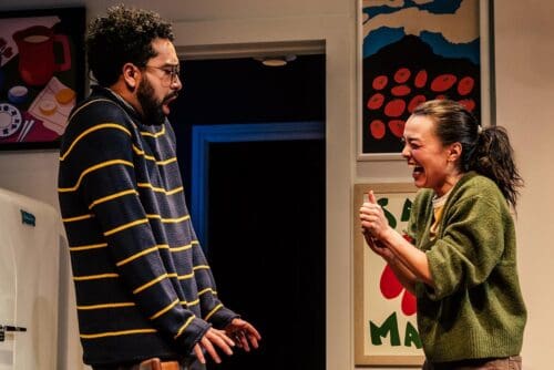Francis attacks Sally’s volatility without apology. She lets the character be sharp, selfish, occasionally unbearable. It is the evening’s most committed performance. It is also wearying, because the script withholds the wit and vulnerability that might make Sally’s cruelty feel tragic instead of habitual. Theo is written as so serenely supportive that he begins to resemble a wellness podcast in human form. When he finally betrays Sally by using their private life for material, the moment lands with a polite thud. I have heard louder gasps at a malfunctioning espresso machine.