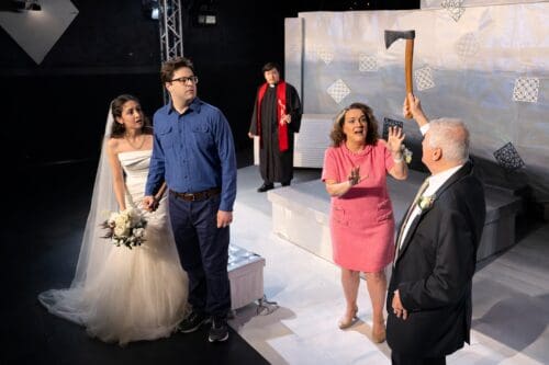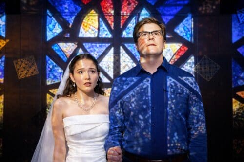While the shock value of an older woman seducing a much younger man may not land as strongly as it did in 1967, the performances—particularly from Schwimmer and Ryan—maintain the tension. Ms. Iglesias is equally effective as Elaine, capturing both vulnerability and resolve. Supporting players, including Katrina Dixon and Andrew Abril in multiple roles, round out a uniformly solid ensemble.