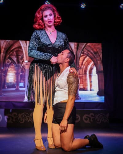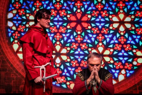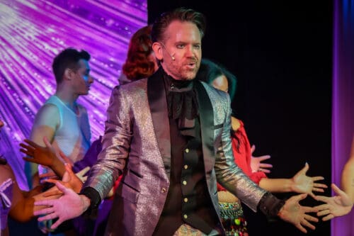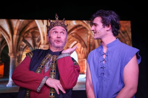 The production gains a spark of international flair from Billy L’Amour as Fastrada, Pippin’s conniving and incestuous stepmother. A former soloist with Le Opéra National de Paris and now a favorite local drag queen, L’Amour brings an elite level of dance technique to the stage, blending classical ballet with the wit of a seasoned cabaret performer. Her Fastrada is a delicious, calculating delight who commands the stage with every high kick. Providing the production with grounding authority is Don Kelley as the formidable, tyrannical and bloodthirsty King Charlemagne aka King Charles, creator of the Holy Roman Empire. A veteran of the local stage, Kelley is commanding and comedically sharp. The use of a digital track made me long for a live orchestra—especially during “War is a Science” when Kelly briefly fell out of sync with the track. As a performer, my empathy kicked in, but his lightning-fast recovery only proved what a total pro he is. Still, with the caliber of musical directors this company hires and the space available, a small pit would have provided a much-needed safety net and a richer sound.
