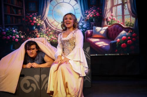 As the story unfolds, Meagan Lawson’s Catherine, a widow with whom Pippin attempts romance, provides the emotional center of the second act. Lawson brings a much-needed groundedness to “Ordinary Woman,” offering a warmth that makes Pippin’s eventual choice feel earned. This domestic reality is bolstered by Ari Rand as Catherine’s son Theo. Meanwhile, the show-stopping moment of the evening belongs to Sonia Reavis as Pippin’s grandma Berthe. A beloved figure in the CV theater scene, Reavis turns “No Time at All” into an interactive celebration. Rounding out the principals is Chris Carranza; his background as a professional vocalist and a local Zumba instructor is evident in his physical commitment to Pippin’s wicked and arrogant half-brother, Lewis.