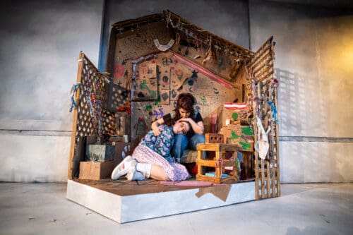 The play takes a sharp turn in Acts II and III, pivoting to a harshly realistic tone. Angie, a sixteen-year-old dropout, is huddled in a ramshackle backyard playhouse with her best (only?) friend, a twelve-year-old girl named Kit, making plans to kill her mother and run away to the city. This aspect of Top Girls has always made me uncomfortable: using Kit’s age and their relationship as commentary on Angie’s immaturity and intelligence. Thankfully, Collin Quinn Rice (who also plays the poker-faced head of the waitstaff in the first act) is absolutely hilarious. Beautifully replicating the cadences of pre-teens and wielding razor-sharp comic timing, Rice walks away with the scene every time they step on stage as Kit. The set-up still chafes, but humor is an effective bandage.