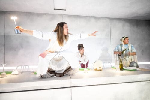 But it is now 2026—forty-four years later—and we have a new Top Girls on stage at Raven Theatre in Rogers Park. Would it be updated? Edited? Reconceived? Overwhelmed with a glitzy production? Any of the things that ambitious directors do to bring old plays into a different era?