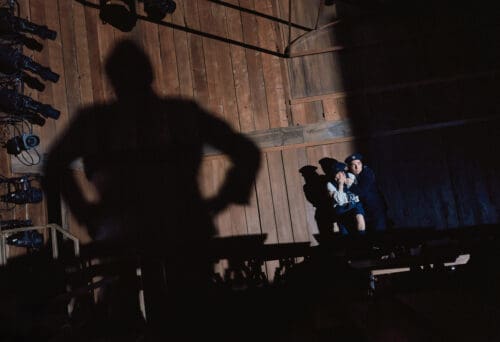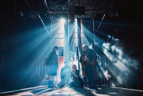 After an overly extended mime prologue in which Slater proves that he is no Marcel Marceau, the drama begins. Scott Davis has arranged several benches onstage to represent the train. It’s doubtful anyone has ever been on a train that even faintly resembles this set. However, Davis’s arrangement of benches gives the 12-year-old children—Adolphe, Henri, Berthe, and Etienette—plenty of room to romp around.