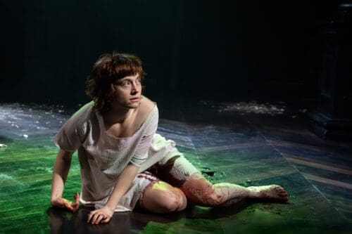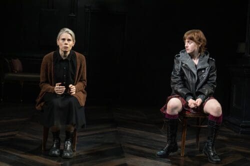 Ziegler’s most notable innovation is the effortless blending of two time periods. The Chorus, played by Celia Keenan-Bolger, is no longer an outsider commenting on the action but the very reason the story is being revisited. She recalls reading Antigone in high school and then putting it away. Yet over the years, the echo of Antigone’s voice keeps returning to her—more urgently now that this contemporary forty-year-old woman is pregnant and living in a world where her freedom to choose how to respond is anything but certain.
