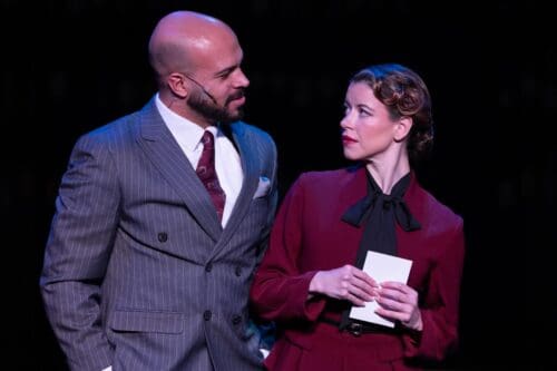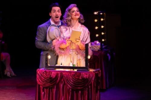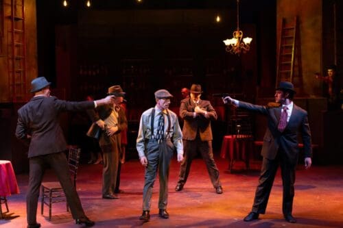 Visually, the production supports the classic tone of the show. Jimmy Cuomo’s set evokes the bustling world of Broadway gamblers and backroom deals, while Moira Wilkes’ lighting and Kevin Mark Harris’ period costumes complete the picture of mid-century theatrical flair.