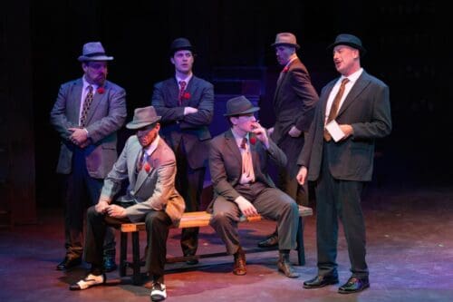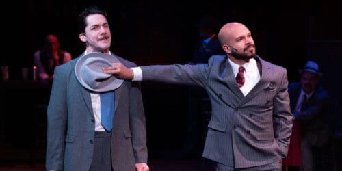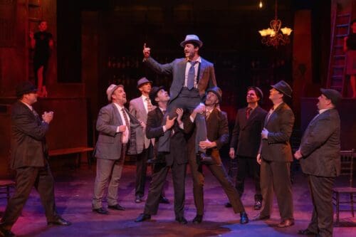 At 75 years of age, many companies think this perfect musical is too musical comedy or too stereotyping to be presented simply as written. Well, let me tell you, director Adam Karsten’s production of Guys and Dolls at Coachella Valley Repertory delivers something far more satisfying than a revamp: Here, we have a rousingly faithful revival performed with style, confidence, and a level of polish that would be a coup in a much larger market. That it is happening in Palm Springs only makes the accomplishment more impressive.