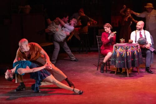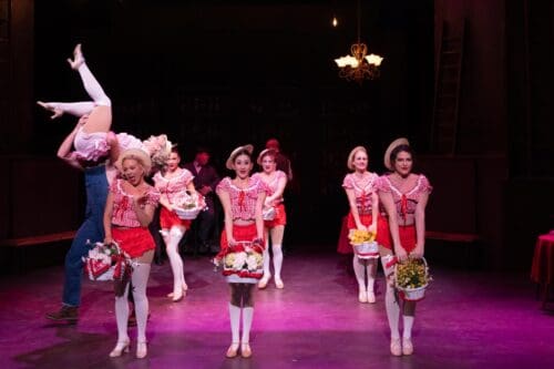The ensemble creates a vibrant Runyonland, and the dancers—led by dance captain Anton Harrison-LaMond–bring Karen Sieber’s choreography to life with crisp precision and plenty of personality, with The Hot Box sequences adding their own dose of showbiz sparkle.