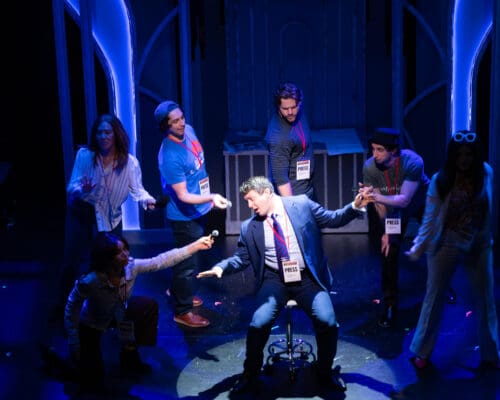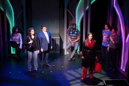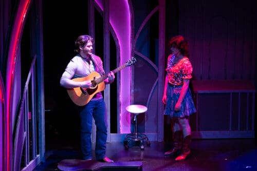 Standout performances include Dan Olson as Tom, The Beacon’s photographer, and Jack Rasmussen as Jimmy, a country singer celebrity who gets burned by The Beacon. Both performances feel grounded and true to life, with appealing vocals and an interior life that makes the audience care. Austin Mirsoltani is also impressive, transforming completely between the two characters he plays—Matthew and Ricky Knight.