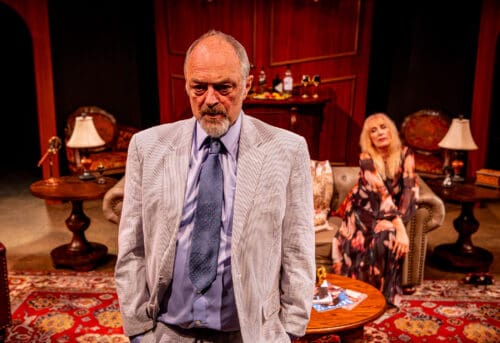 For Pinter, society’s political tempest is an ever-present reality, one that is only intensified by the efforts of his characters to ignore it. Director Jack Heller does an excellent job of depositing identifiable “Easter eggs” throughout Party Time that harken back to recent history while offering cautions of a contemporary nature.
