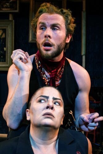 And yet, it falls short. The biggest issue with the production is the repeated breaking of the fourth wall. Let me clarify: it’s not the breaking of the fourth wall per se, which is not uncommon in absurdist theatre, but the fact that it’s done with new jokes that, while very amusing, are quite frankly unworthy of the text. There’s an affectionate callout to Chris Jones, some gentle ribbing of Beata Pilsch (the founder of Trap Door), some meta commentary on overacting, and so on. These were enormously popular with the opening-night audience, but I found myself getting increasingly irritated with them as the show went on, for the simple reason that they contribute nothing of substance to the show and, much worse, disrupt its internal logic, unintentionally trivializing the entire production. Cuttlefish may have been written in 1922, but its debates about the production of art under political pressure are as timely now as they were back then. I recently read an article—that I will not link to—in one of the most intellectually venerated conservative publications that described the Oscar-winning One Battle After Another as “openly seditious” and an “ode to terrorism.” That rhetoric would not be out of place in any one of Hyrcan’s speeches.