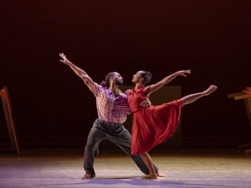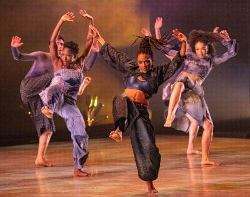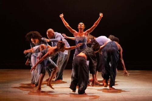 The Holy Blues – The Los Angeles premiere of a 2025 piece conceived and directed by Jawole Willa Jo Zollar in collaboration with choreographers Samantha Figgins and Chalvar Monteiro, with assistant director Vincent E. Thomas examines Alvin Ailey’s roots in the Gospel churches of the South where he grew up listening to the Holy Blues, anthems honoring the human spirit. Performed to music by various artists, costumes made from jean material were designed by Jon Taylor, with lighting by Yi-Chung Chen and scenic design by Joseph Anthony Gaito. Whether moving as one or a group, the nine barefoot dancers offered true inspiration to the higher power within us all.