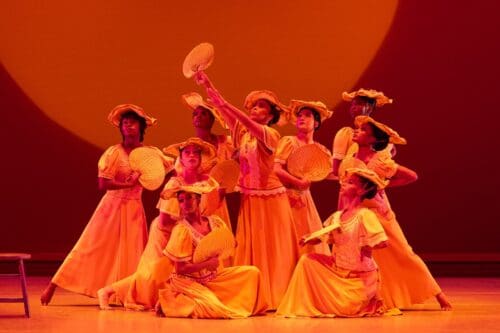 In the Take Me to the Water section, company members created the effect of water by stretching and waving blue, flowing material across the stage, and the audience-pleasing finale Rocka My Soul in the Bosom of Abraham which, at the end, had the entire audience on its feet singing and dancing along with the soul-inspiring gospel song which speaks directly to the universal goodness in us all.