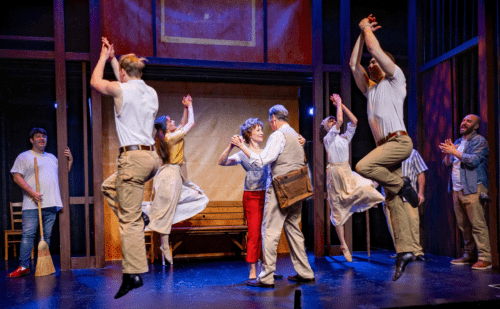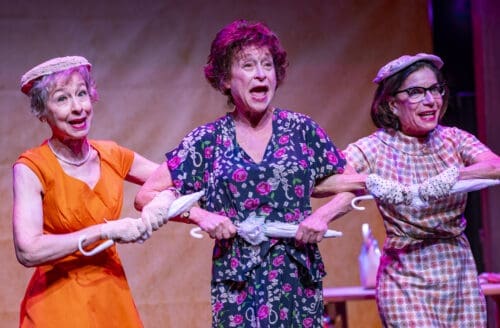 Through the magic of musical theatre, we’re vicariously taking a guided tour through Israel in the early 1960s. On your left, a group of widows seeing the sights and setting their sights on finding—maybe (who knows?)—a husband. On your right, natives and transplants kibbitzing on a kibbutz. All around—watch your step—there’s a celebration of the anniversary of Israel becoming independent not too long ago (1948). And straight ahead, one couple’s bumpy road to second-chance romance (or is it a dead end?), accompanied by some wonderful songs, courtesy of Jerry Herman in the early part of his road to becoming a Broadway legend.