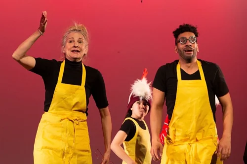 Here’s a special recipe for success and entertainment. It’s all in the mixing and blending and combining of diverse ingredients. The people participating are of different ages and experiences and talents. The elements of the production are acting, music, and movement. The tones and moods range from goofy LOL comedy, in large doses, to moments of touching tenderness, with accompanying live instrumentals that might be classy classical pieces or contain contemporary concoctions. Keep an open mind. Stir well, rehearse, respect, and revise. Add sparkle and the magic of the moment, always ready to improve, improvise, and imagine more.