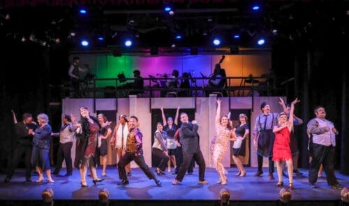This musical requires an extra-large cast of 20, and everyone onstage needs to be up to the mark. There are no walk-ons in The Drowsy Chaperone. First among equals is Brian P. Evans as Man in Chair, serving as the narrator-commentator who shares his nostalgic affection for musicals of the 1920s. Kaitlyn Summers can represent the entire cast in versatility and excellence, if only because she has so much stage time.