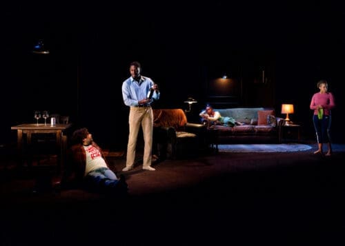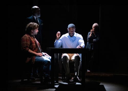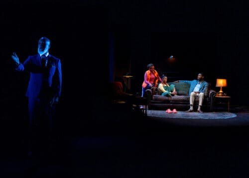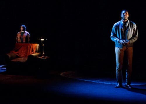 The problem lies mainly in the Beatrice–Jen scenes. Kacie Rogers plays Beatrice, Chris’s pregnant sister, with sharp control, and Carolyn Ratteray gives Jen a grounded warmth. Both are good. But these scenes ask them to carry too much exposition: Chris’s medical history, his finances, his withdrawal from work and family. The play knows Beatrice is right to worry. It never fully dramatizes why she has waited this long to force the issue. As a result, the confrontation lands with less force than it should.