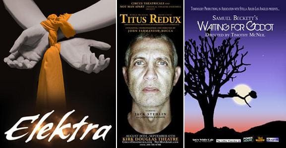 Theater Reviews: ELEKTRA (Getty Villa) / TITUS REDUX (Kirk Douglas Theater) / WAITING FOR GODOT (Stella Adler Theater)