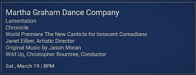 Dance & Music: MARTHA GRAHAM DANCE COMPANY (World Premiere: “The New Canticle for Innocent Comedians” composed and performed by Jason Moran at The Soraya)